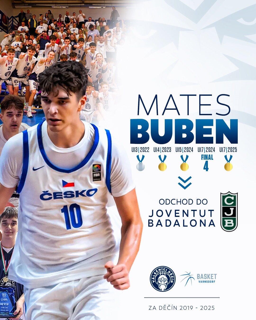 Velmi si také vážíme, že jste mu v uplynulém roce umožnili ubytování a plnohodnotný tréninkový proces, který vyvrcholil příležitostí působit v zahraničním klubu (Joventut Badalona). Tento krok by nebyl možný bez vaší podpory, odborného vedení a klubového zázemí, které Matějovi poskytlo stabilitu i motivaci.
