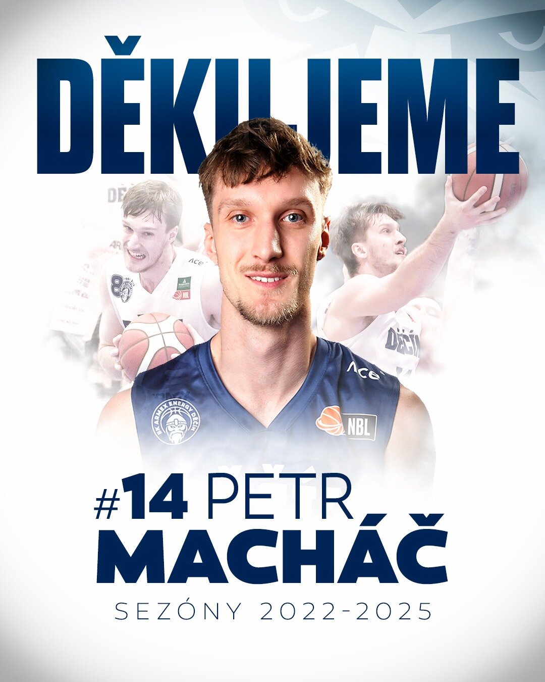 BK ARMEX ENERGY Děčín opouští pivot Petr Macháč. Berounský odchovanec, jenž přišel na sever Čech z USK Praha v roce 2022, strávil u Válečníků tři celé sezóny. V NBL působil odročníku 2018/19, kdy v dresu USK Praha naskočil do 17 zápasů. Za Děčín jich Petr v NBL odehrál s letošními osmi celkem 147.