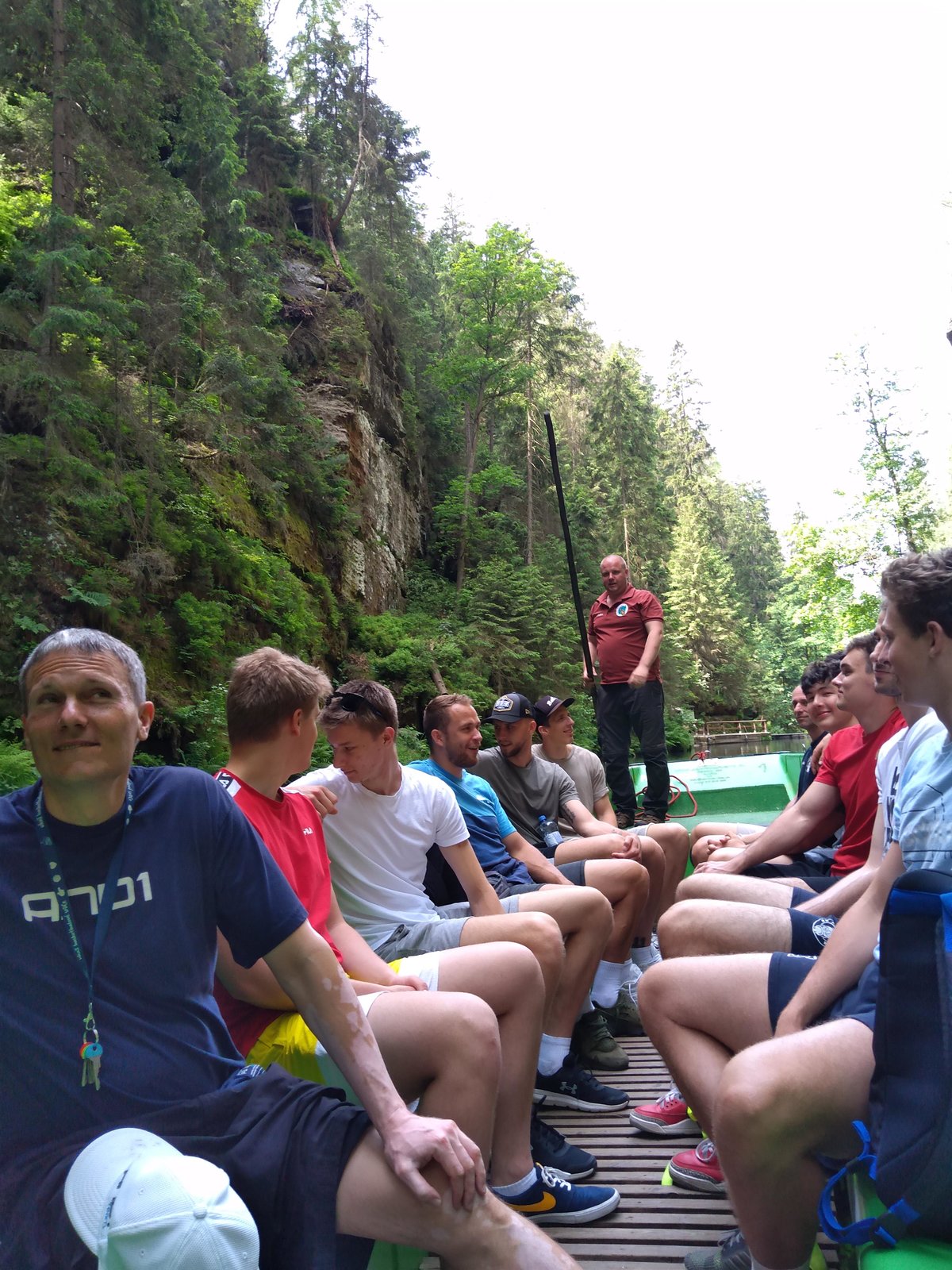 Válečníci přijali pozvání pana starosty Hřenska, bývalého viceprezidenta klubu JUDr. Zdeňka Pánka, jenž se stal jejich osobním průvodcem nejkrásnější a nejtajemnější částí Českého Švýcarska. K týmu se na tuto akci připojil již i Matěj Svoboda, pro něhož se jednalo o první kontakt s místní úchvatnou přírodou. Pan starosta příjemně basketbalisty pohostil a na jednotlivých také přednášel o historii, zajímavostech a reáliích této oblasti. Výprava měla následně možnost projet se postupně Divokou i Edmundovou soutěskou řeky Kamenice.